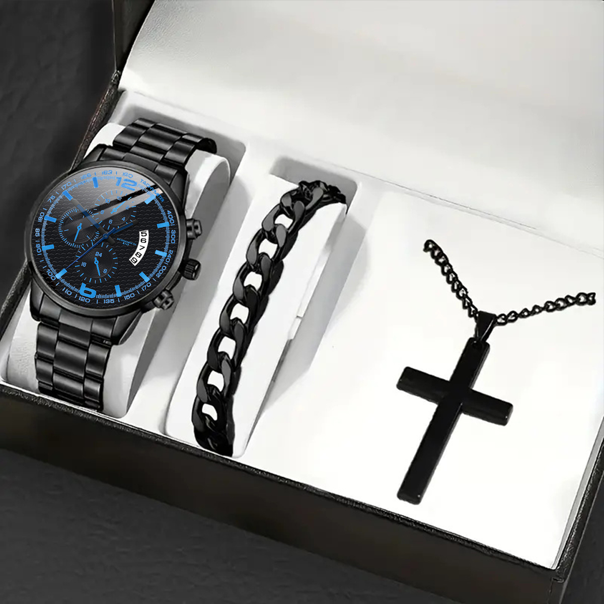 I even started looking at other accessories, like watches and bracelets. I was particularly drawn to the idea of a matching set. I saw this fantastic 3Pcs Men's Simple Business Three Eyes Digital Calendar Luminous Hands Quartz Dteel Band Watch Necklace Bracelet Set from SumsFashion Essentials, and it got me thinking about how the metal color would affect the overall look. It made me think harder about what metal color I really preferred.